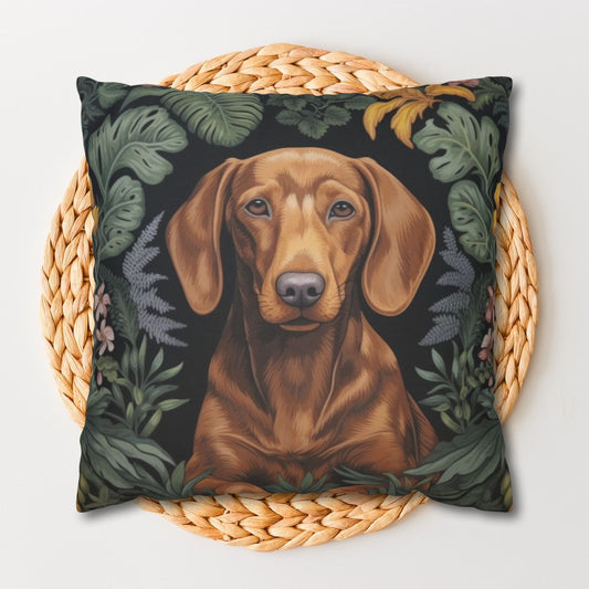 Botanical Brown Dachshund Decorative Pillow William Morris Inspired | Cottage-core Pillow