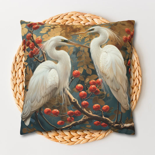 Egret Birds Decorative Pillow Vietnamese Art Style | Cottage-core Pillow
