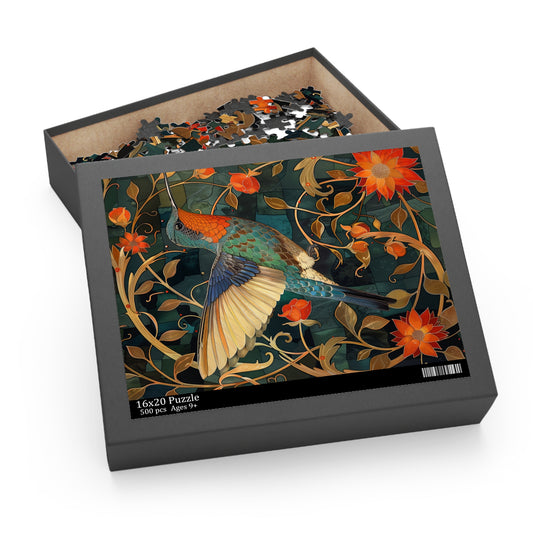 Art Deco Botanical Hummingbird Jigsaw Puzzle (120, 252, 500-Piece) Gift-Ready Box