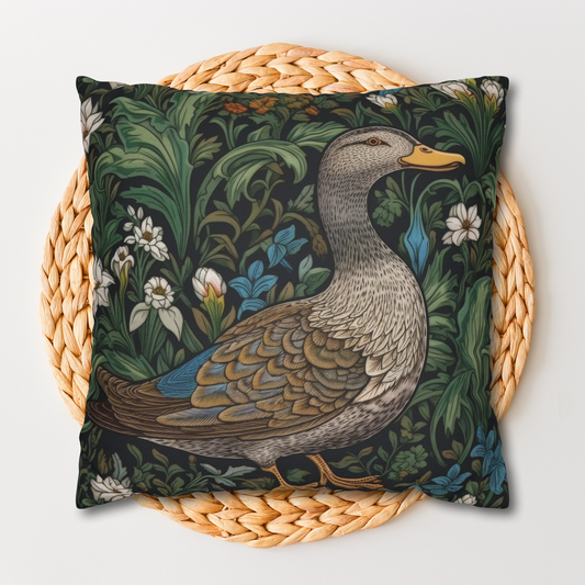 Botanical Duck Decorative Pillow William Morris Inspired | Cottage-core Pillow