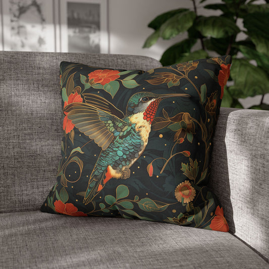 Art Nouveau Vibrant Hummingbird Pillowcase, Nature-inspired Home Decor, Throw Pillow for Living Room