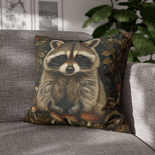 William Morris Inspired Woodland Raccoon Mushroom Decorative Pillowcase | Cottage-core Pillowcase