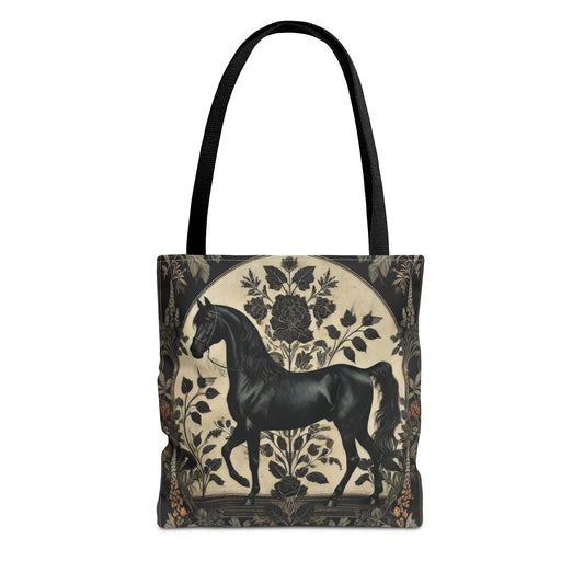William Morris Inspired Botanicals Arabian Black Horse Tote Bag, Wildlife Tote Bag, Cottage-core Tote Bag, Eco-Friendly Carryall