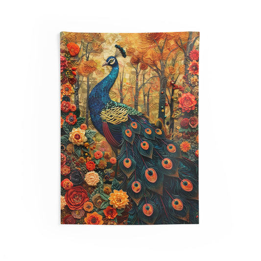Tapestry of Peacock Wildflowers| Art Deco Style Wall Art | Cottagecore Hanging and Home Decor