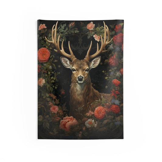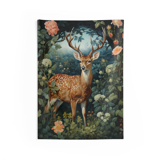 Tapestry of Floral Reindeer, William Morris Inspired, Cottagecore Indoor Wall Tapestries