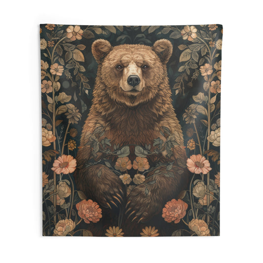 Tapestry of Botanical Bear | William Morris Medieval Style Wall Art | Cottagecore Hanging and Home Decor