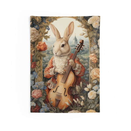 Tapestry of Rococo Rabbit Plays The Cello William Morris Inspired Indoor Wall Tapestries