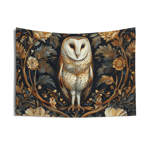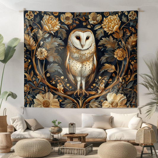 Tapestry of Vintage Barn Owl | Art Deco Style Wall Art | Cottagecore Hanging and Home Decor