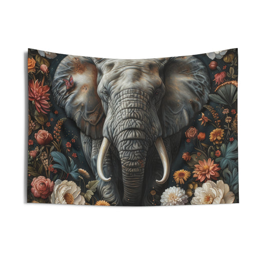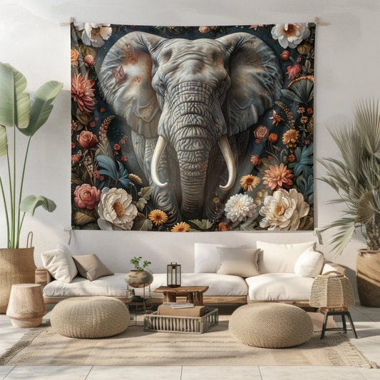 Tapestry of Wild Elephant In The Forest | Elephant Art Deco Style Tapestry Wall Art | Cottagecore Hanging and Home Decor