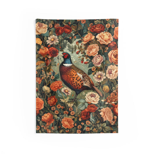 Tapestry of Pheasant Floral Garden | William Morris Art Deco Hanging Home Decor | Pheasant Fall Season Wall Tapestry