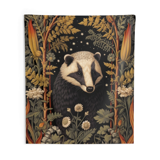 Tapestry of Botanical Badger | William Morris Medieval Style Wall Art | Cottagecore Hanging and Home Decor