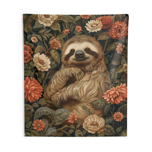 Tapestry of Botanical Sloth | William Morris Medieval Style Wall Art | Cottagecore Hanging and Home Decor