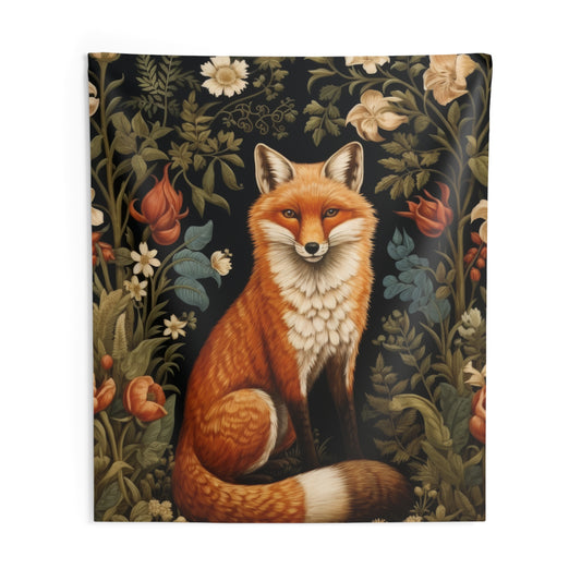 Tapestry of Forest Fox, William Morris Inspired, Cottagecore Indoor Wall Tapestries