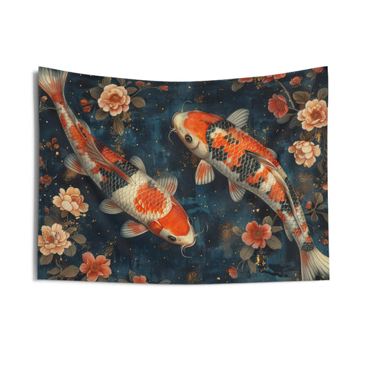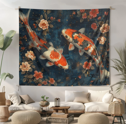 Tapestry of Koi Fish | Art Deco Style Wall Art | Cottagecore Hanging and Home Decor