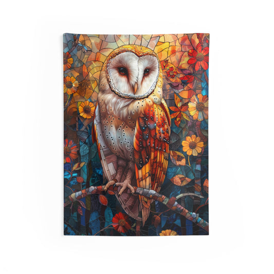 Tapestry of Forest Barn Owl Faux Stained Glass Vibrant Psychedelic Art Wall Tapestries
