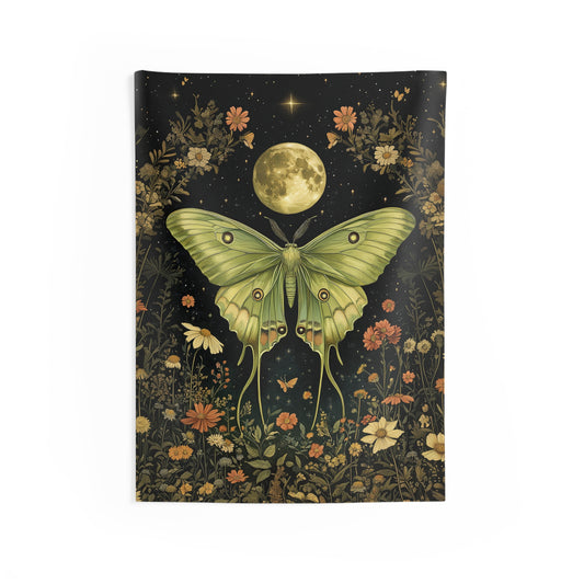 Tapestry of Luna Moth Full Moon, William Morris Inspired, Art Deco Indoor Wall Tapestries