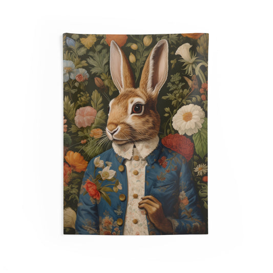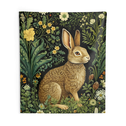 Tapestry of Botanical Bunny, William Morris Inspired, Cottagecore Indoor Wall Tapestries