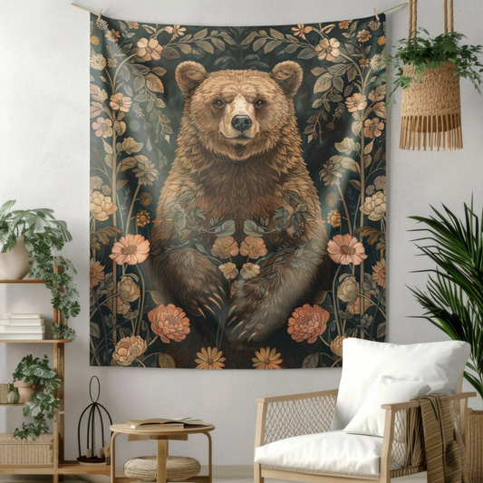 Regular price From $35.99 USDRegular priceUnit price / per$44.99 USDSale price From $35.99 USDTapestry of Botanical Bear | William Morris Medieval Style Wall Art | Cottagecore Hanging and Home Decor
