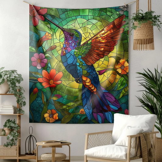 Regular price From $35.99 USDRegular priceUnit price / per$44.99 USDSale price From $35.99 USDTapestry of Humming Bird Faux Stained Glass Vibrant Psychedelic Art Wall Tapestries