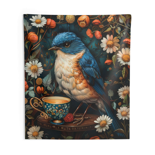 Tapestry of Bluebird Daisy William Morris Medieval Style Wall Art Cottagecore Hanging and Home Decor