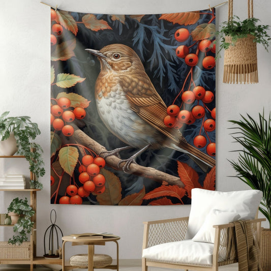 Regular price From $35.99 USDRegular priceUnit price / per$44.99 USDSale price From $35.99 USDTapestry of Forest Song Thrush Bird | William Morris Inspired Cottagecore Hanging and Home Decor