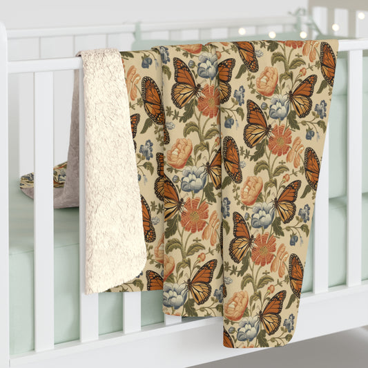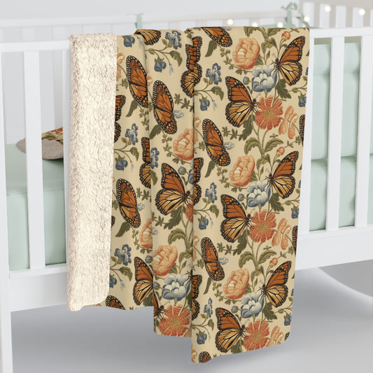 William Morris Inspired Botanical Monarch Butterflies Vintage Pattern Sherpa Blanket, Throw, Home Decor, Cozy Gift, Nature Lover Gift,