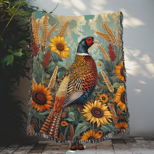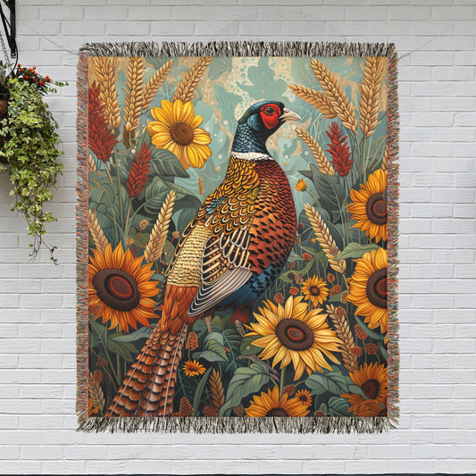 Regular price From $67.50 USDRegular priceUnit price / per$84.38 USDSale price From $67.50 USDArt Deco Print Pheasant Grains Sunflowers, William morris Inspired Woven Cotton Blanket, Cozy Home Decor Blanket