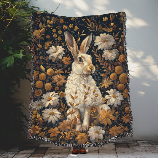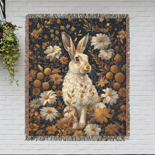 Regular price From $67.50 USDRegular priceUnit price / per$84.38 USDSale price From $67.50 USDWilliam Morris Inspired White Hare With Gold Winter Flowers Woven Blankets, Cozy Home Decor Jacquard Cotton Woven Blanket