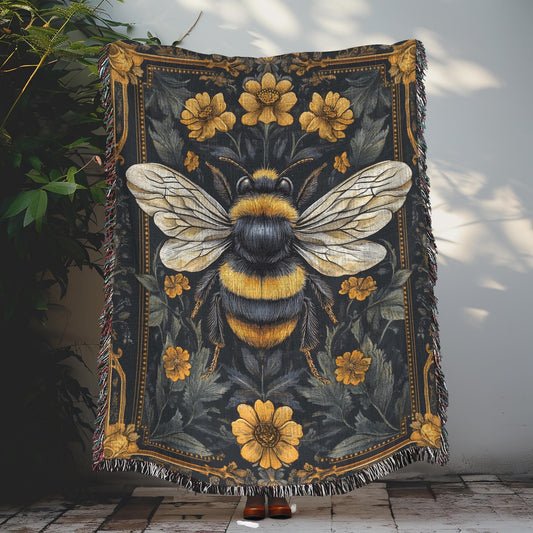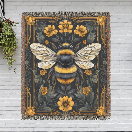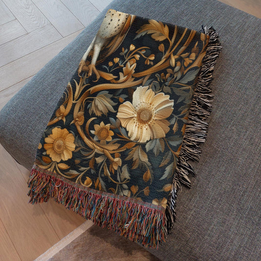 Bumblebee Flowers Woven Blankets, Cozy Home Decor, William Morris Inspired Cotton Blankets