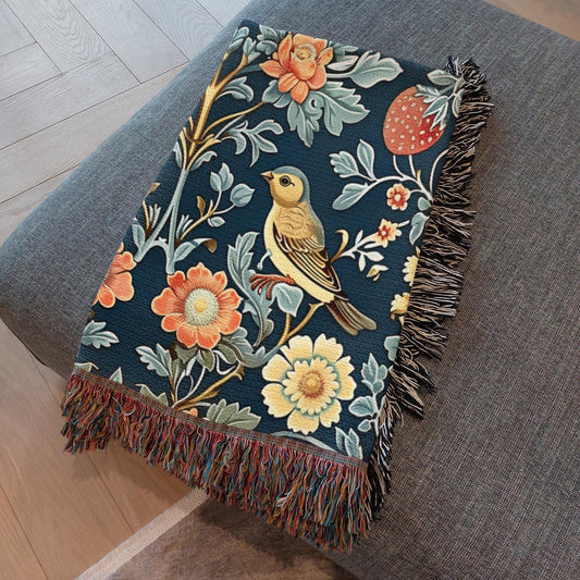 William Morris Inspired Bird Floral Pattern Woven Blankets