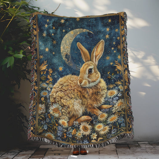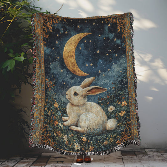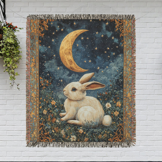 Regular price From $67.50 USDRegular priceUnit price / per$84.38 USDSale price From $67.50 USDRabbit And Crescent Moon In The Style Of William Morris Inspired Woven Blankets