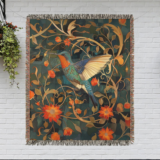 William Morris Inspired Hummingbird Art Nouveau Woven Blankets, Cozy Home Decor Jacquard Cotton Woven Blanket