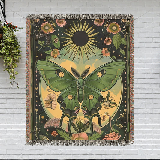 Art Deco The Sun And Luna Moth William Morris Inspired Woven Blankets