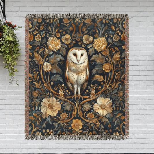 Botanical Barn Owl William Morris Inspired Woven Blankets