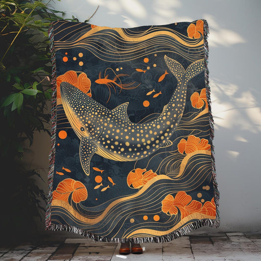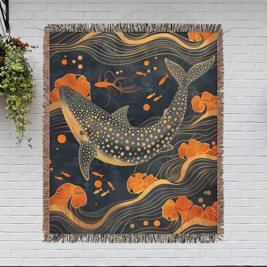 Regular price From $67.50 USDRegular priceUnit price / per$84.38 USDSale price From $67.50 USDIndigo Ink Whale Shark Pattern Woven Blanket, Cozy Home Decor Jacquard Cotton Woven Blanket