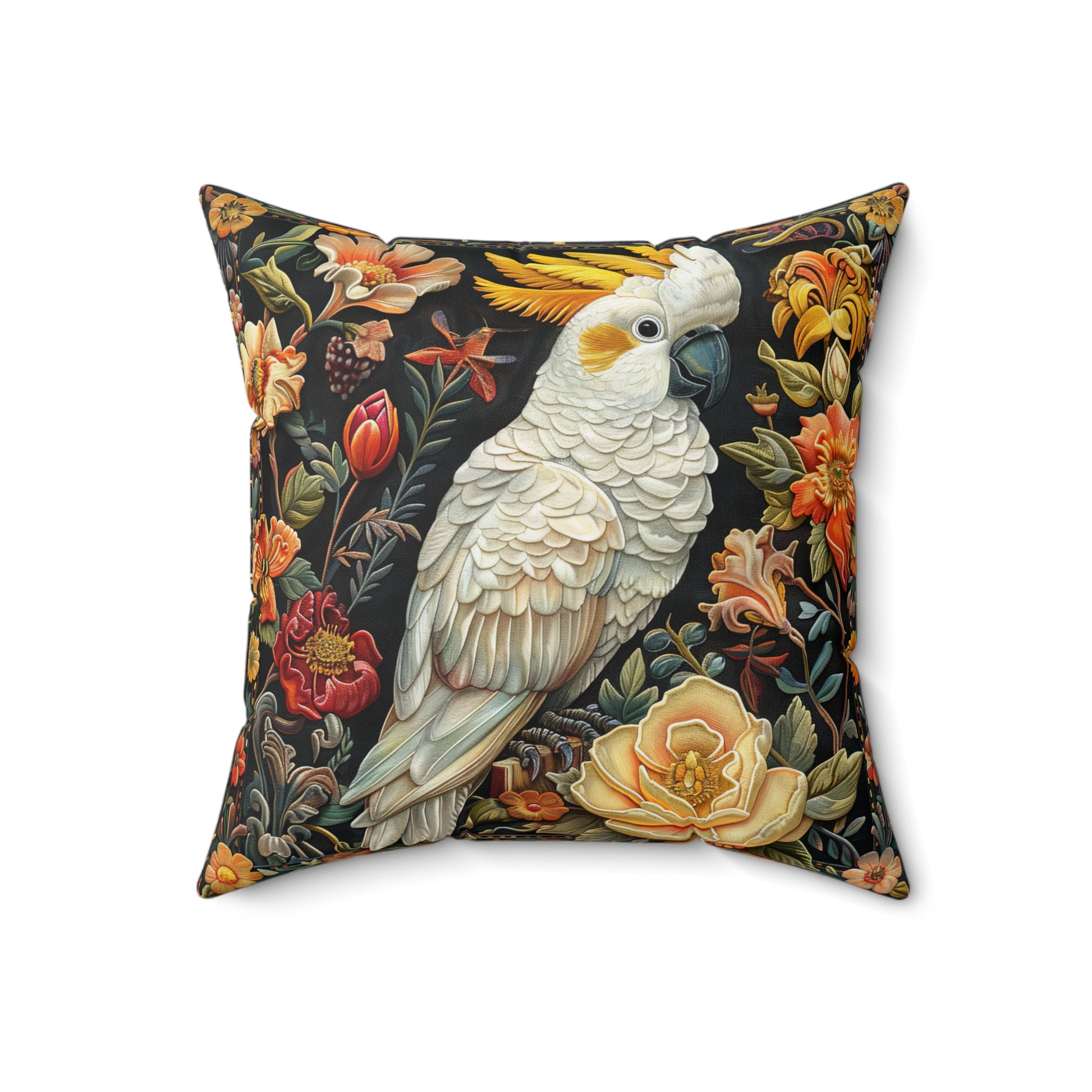This Art Deco Yellow-crested Cockatoo Fall Flowers Home Decor Pillow exudes a warm and cozy vibe, perfect for adding a pop of color to any living space. Ideal for bird lovers and those who appreciate unique home decor, this pillow is great for fall and Thanksgiving decorating.