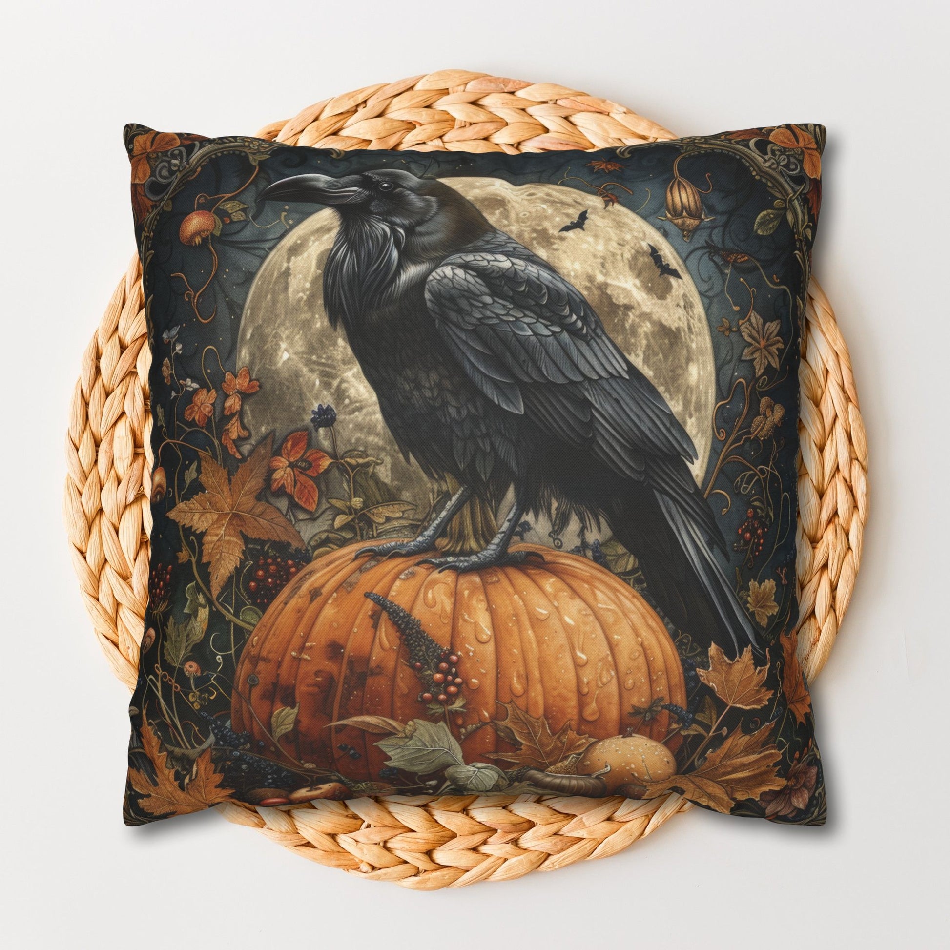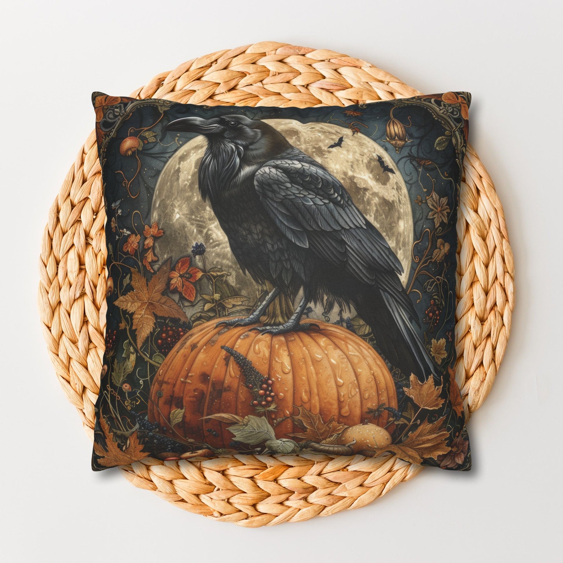 Ideal for Halloween parties, cozy nights by the fire, or adding a gothic flair to your living room, this pillow is both festive and stylish. It also makes a unique gift for Halloween lovers, raven enthusiasts, or anyone who enjoys whimsical seasonal décor.