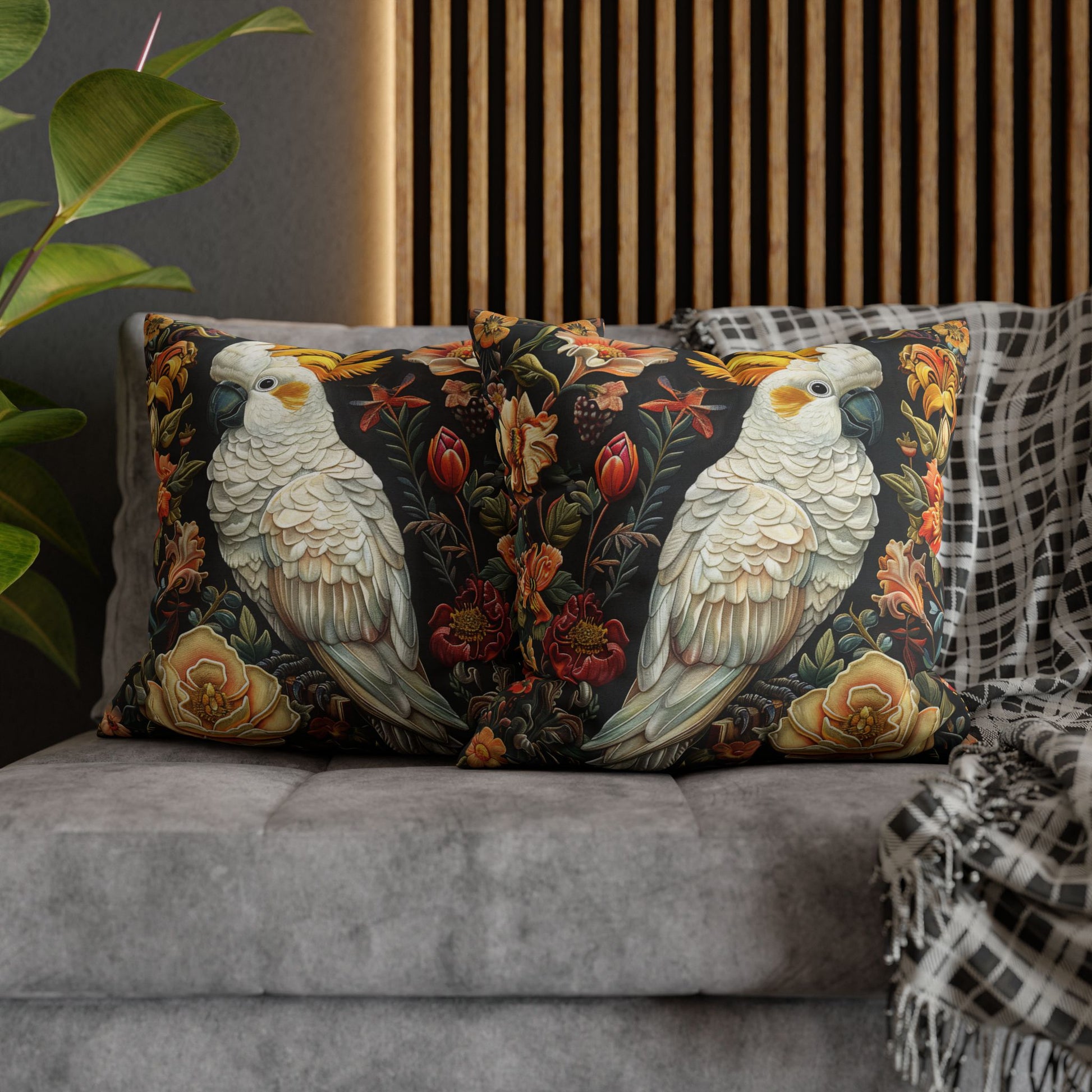 This Art Deco Yellow-crested Cockatoo Fall Flowers Home Decor Pillow exudes a warm and cozy vibe, perfect for adding a pop of color to any living space. Ideal for bird lovers and those who appreciate unique home decor, this pillow is great for fall and Thanksgiving decorating.