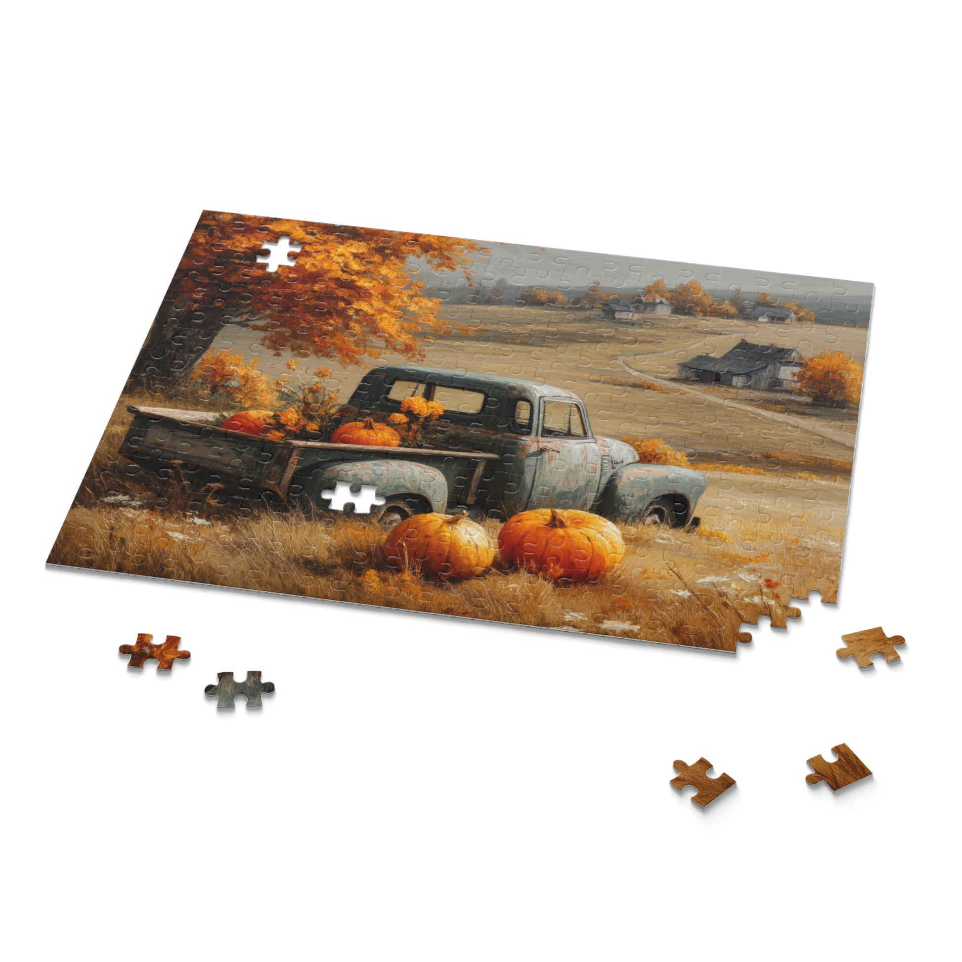 Autumn Vintage Truck Puzzle, Rustic Fall Farmhouse Jigsaw with Pumpkins (120, 252, 500 Pieces)