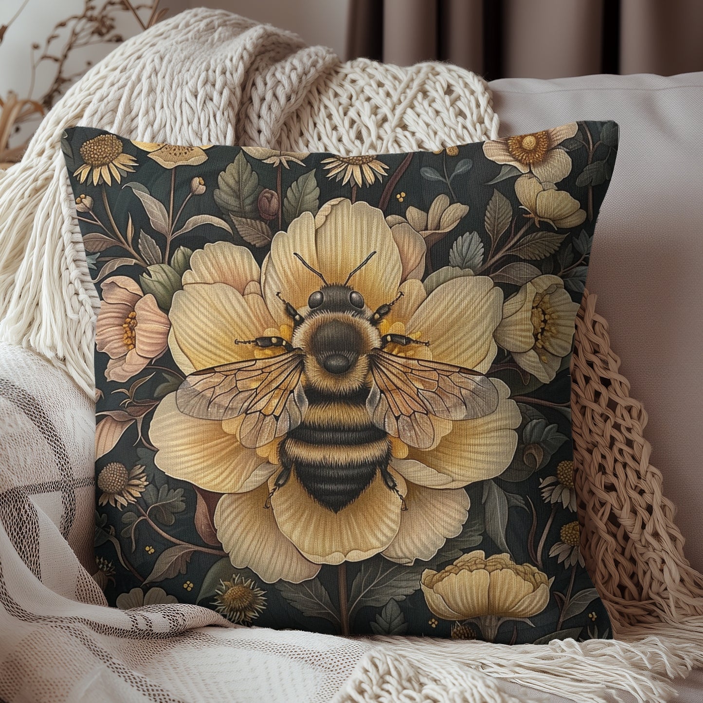 Botanical Bumble Bee William Morris Inspired Pillow, William Morris Cushion Cover, Art Nouveau Pillow