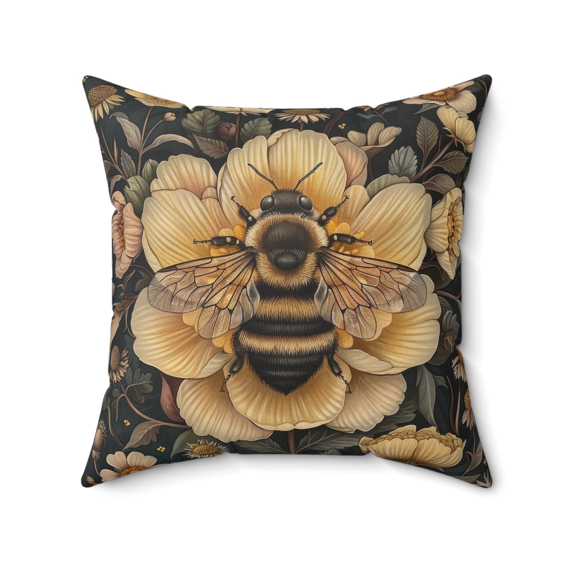 Botanical Bumblebee Pillow: William Morris Art Nouveau Cushion