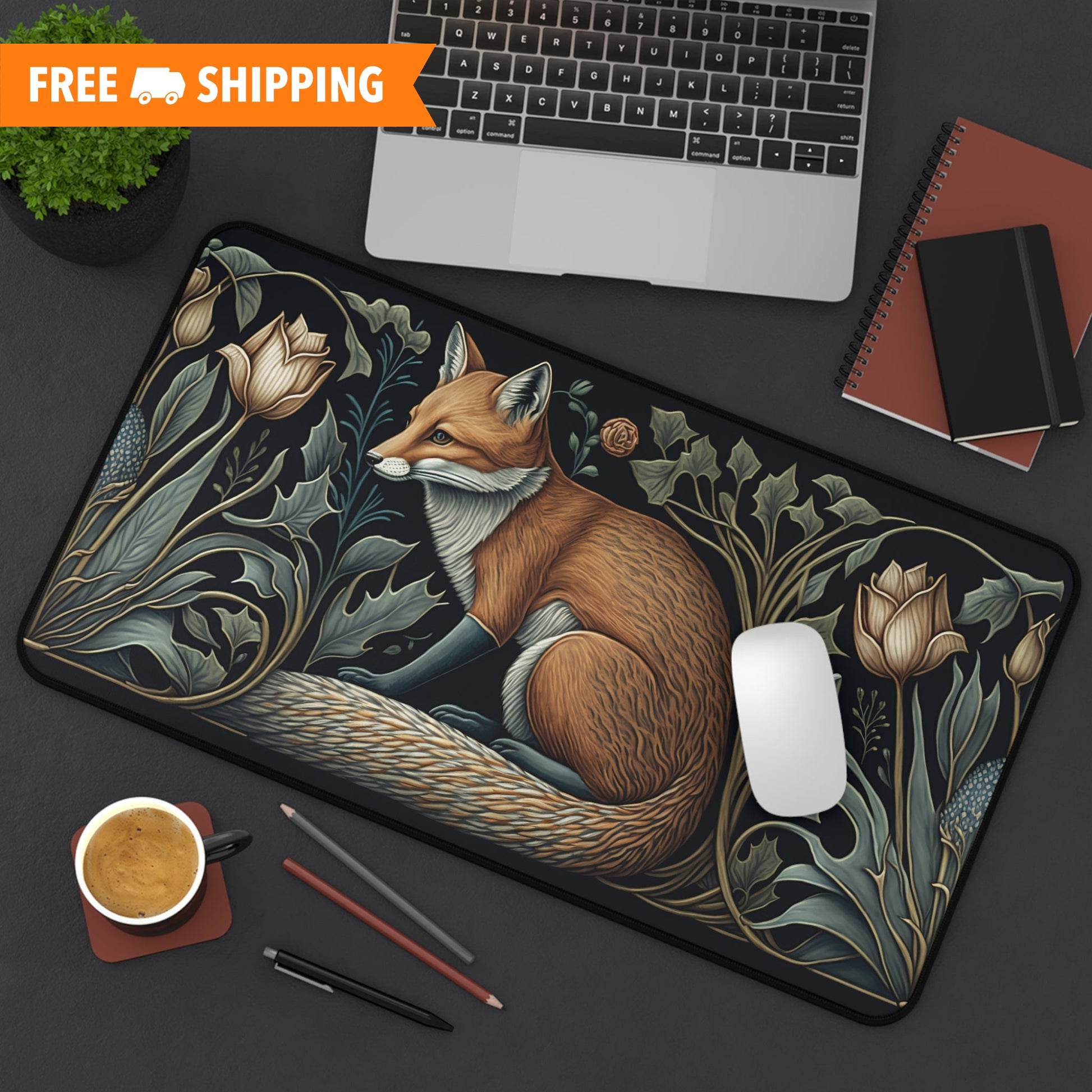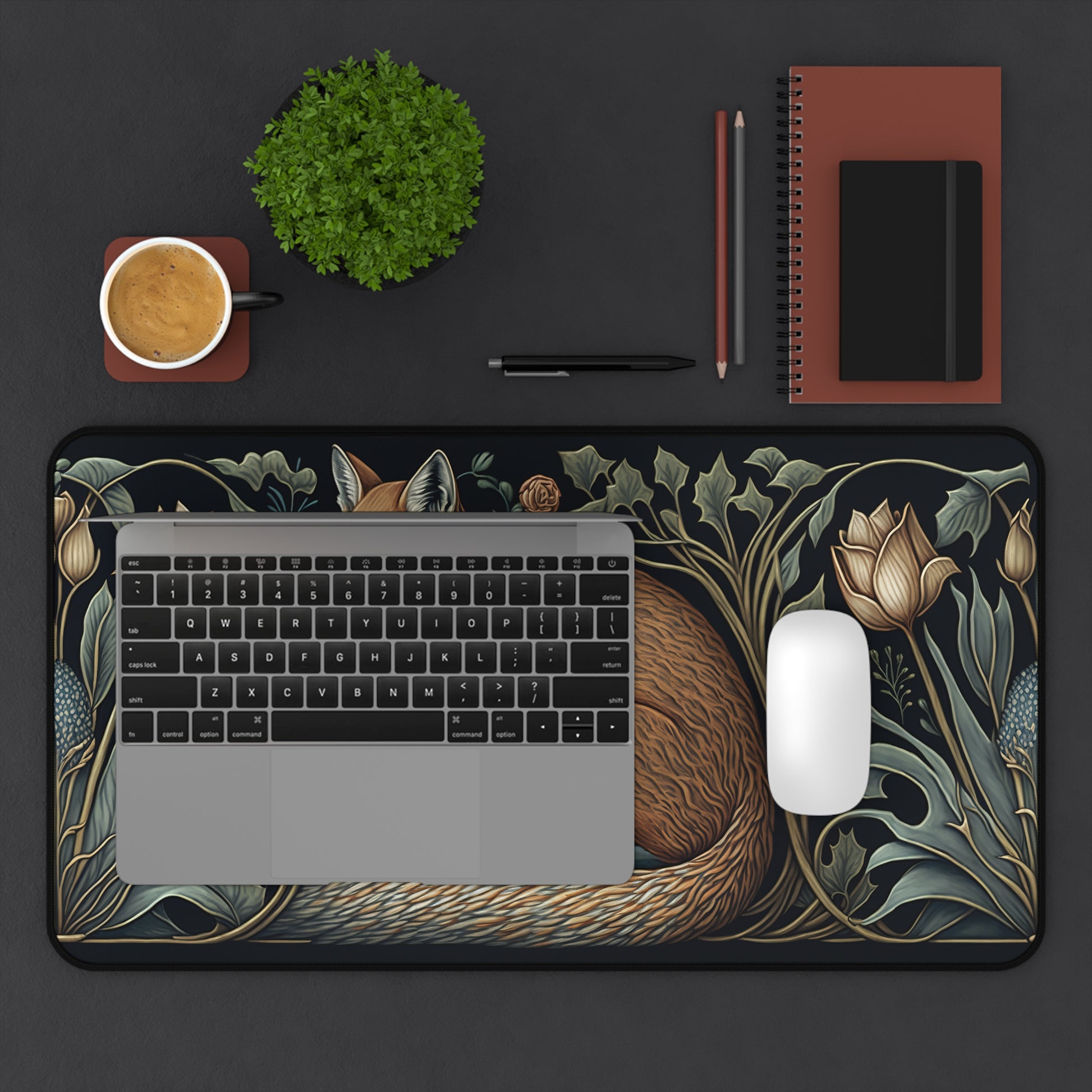 Botanical Fox Desk Mat 2 Sizes | Aesthetic Floral Fox Desk Mat | Office Decor GiftDesk Mats