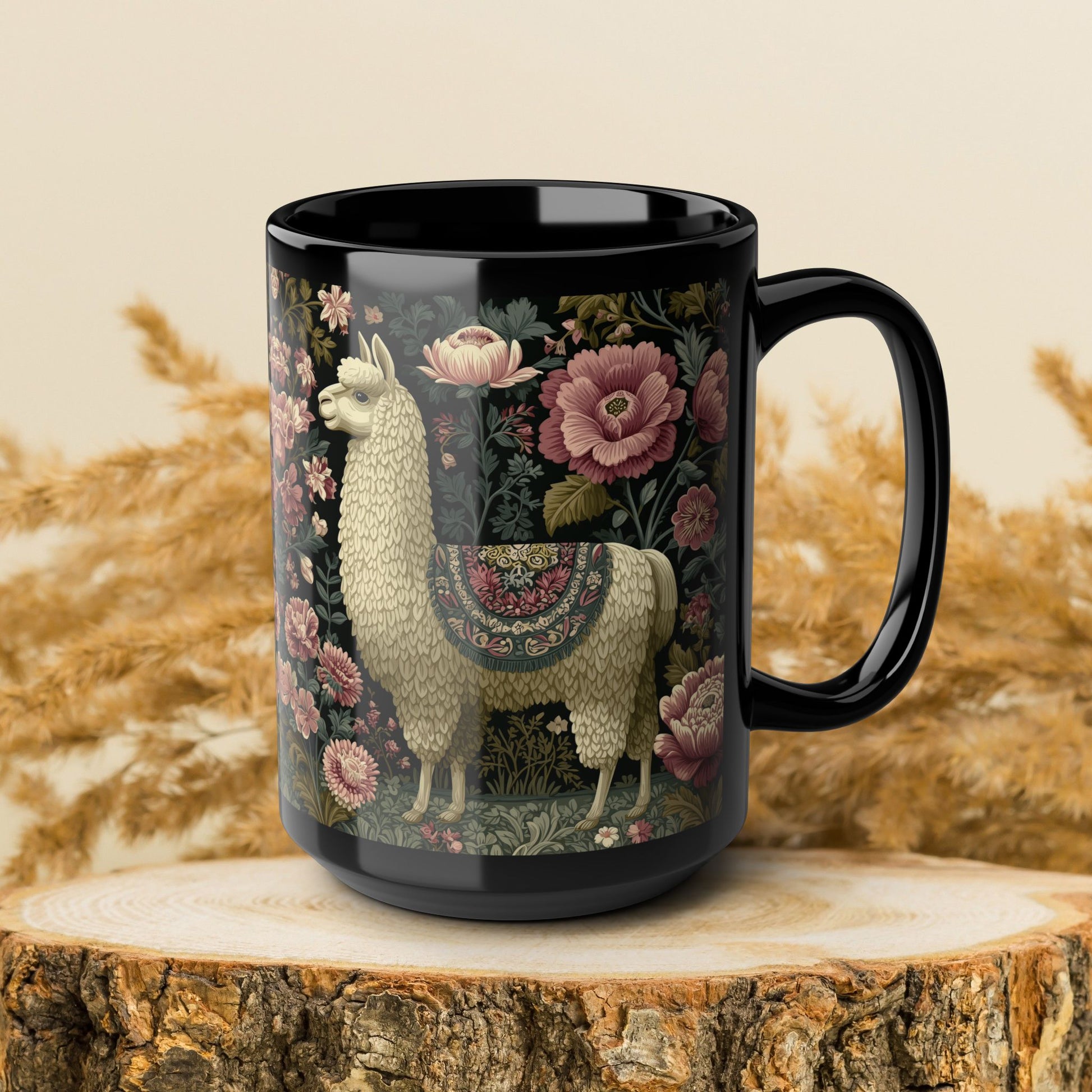 π¦ Product Name Botanical Llama Coffee Mug β William Morris Inspired Floral Black Ceramic Cup (11oz, 15oz)