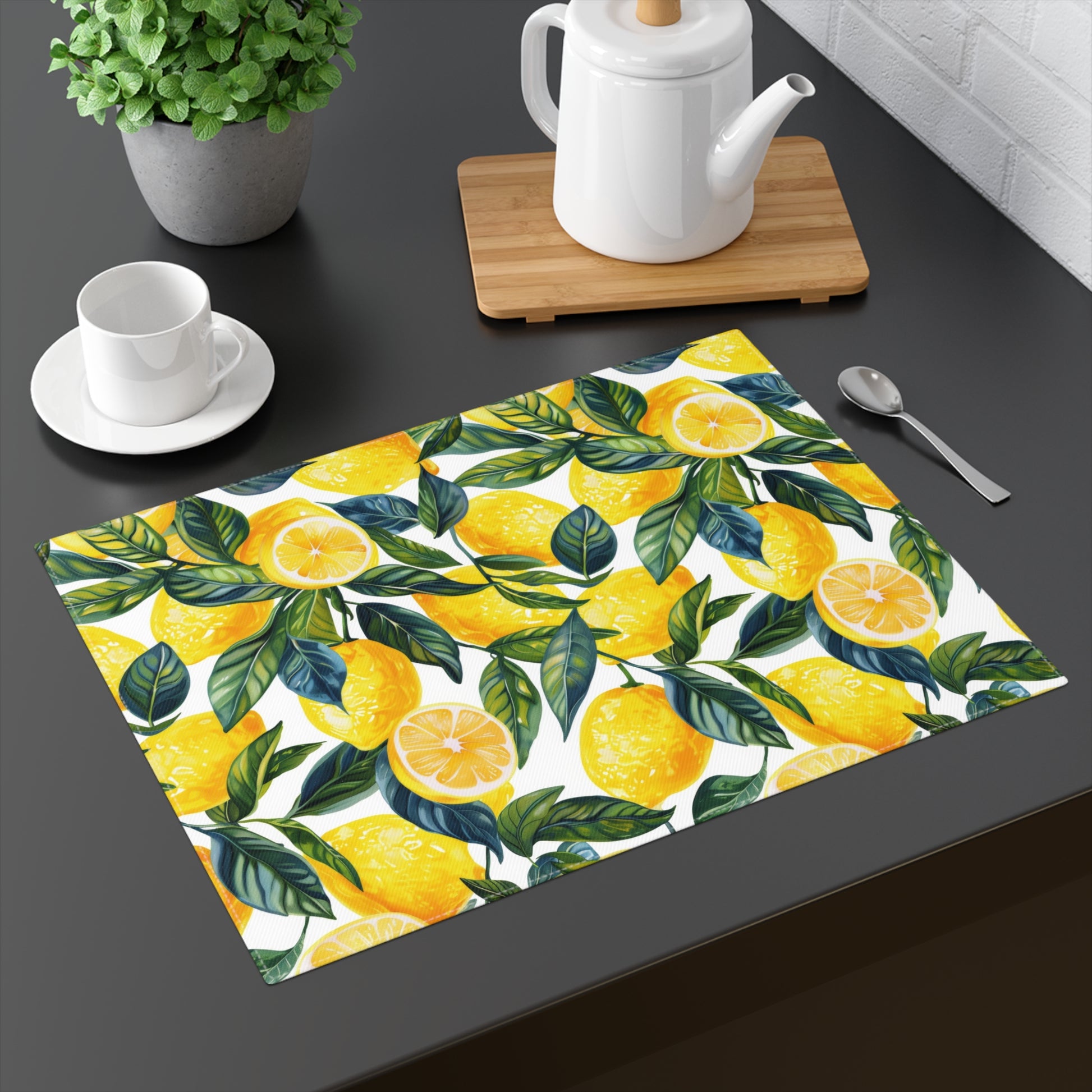 Featuring a lively arrangement of golden lemons, lush green leaves, and crisp, clean details, this placemat is perfect for setting a fun, summery toneβwhether youβre hosting a garden party, brunch with friends, or enjoying a relaxing family meal on the patio. βοΈπ§Ί