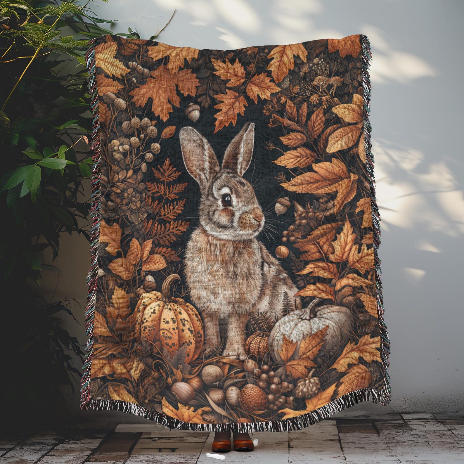 Cotton Woven Blanket, Bunny Fall Forest Cozy Home Decor, William Morris Inspired Throw, Autumn Lap Blanket, Soft Sofa Cover