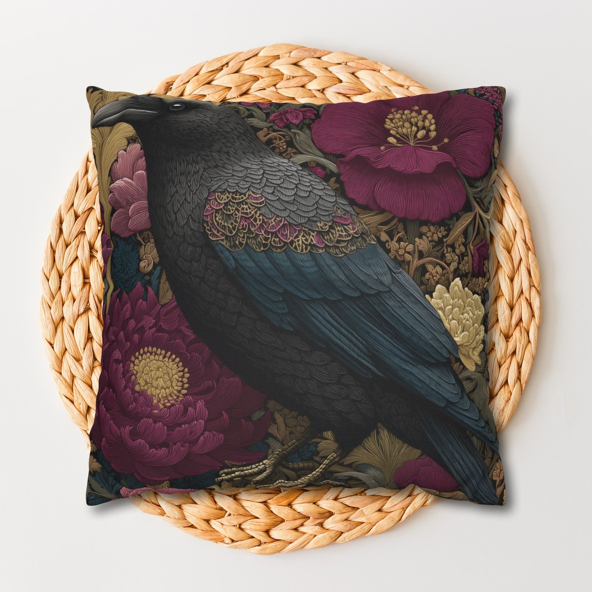 Product Description Bring a bold, dramatic touch to your home with this Elegant Raven & Peony Floral Pillow. Featuring a beautifully illustrated raven surrounded by lush, oversized peonies and intricate botanical details, this pillow exudes dark academia sophistication with a hint of vintage romance. The rich jewel tones and fine line detailing make it a statement piece perfect for any space—whether you're creating a cozy reading nook, enhancing your living room decor, or adding a moody touch to a bedroom. The double-sided print ensures beauty from every angle, and the high-quality polyester fabric guarantees lasting vibrance and durability. A wonderful gift for bird lovers, gothic home decor enthusiasts, and anyone who adores nature-inspired art with an elegant twist. Product Features * 100% spun polyester for durability and shape retention * Vibrant double-sided print showcasing a detailed raven and floral motif * Hidden beige plastic zipper with a sleek metal pull * Comes unassembled to prevent creasing during shipping * Optional insert made from 100% recycled polyester for added comfort Available Options: * Polyester cover only * Polyester cover + insert * Polyester outdoor pillow (weather-resistant) Perfect for: * Gothic, vintage, or dark academia decor * Bird and nature art lovers * Seasonal fall and winter styling * Housewarming, holiday, or special occasion gifts Care Instructions * Remove cover before cleaning * Pre-treat stains with a soft cloth soaked in warm soapy water * Machine wash cover at max 40°C (104°F), normal cycle * Do not bleach or dry clean * Tumble dry low, iron or steam on low heat * Fluff insert to restore shape after washing