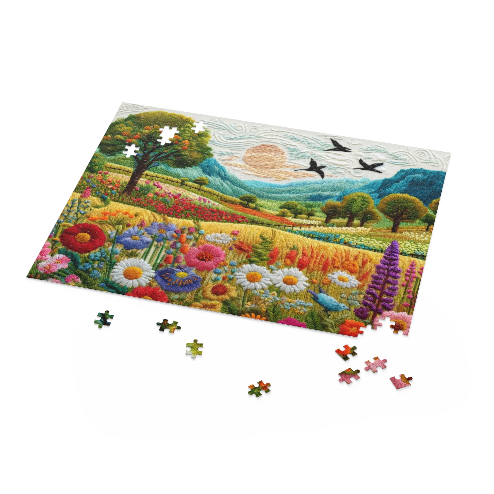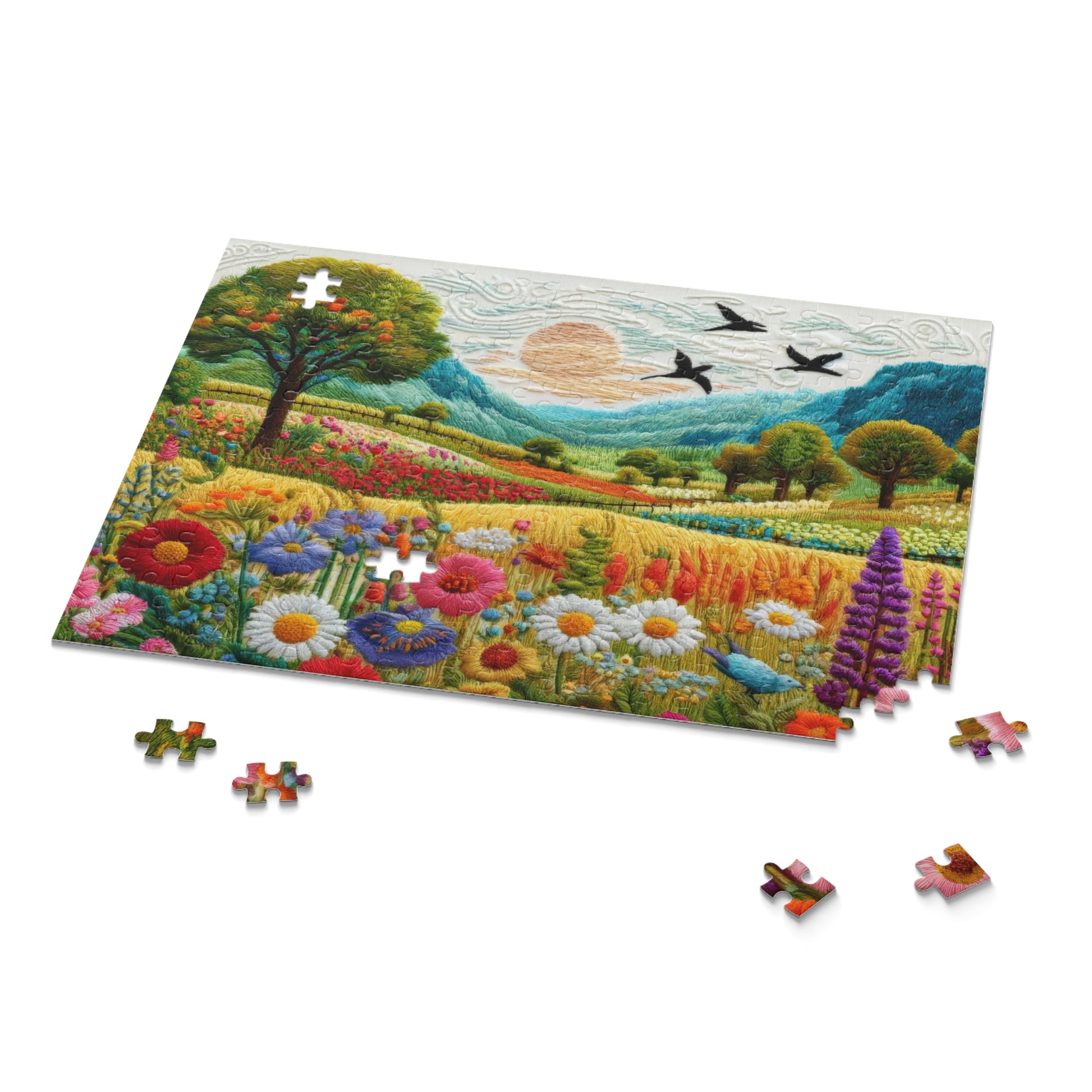 Embroidered Spring Wildflowers Jigsaw Puzzle (120, 252, 500-Piece) Gift-Ready Box, Adult Jigsaw Puzzle