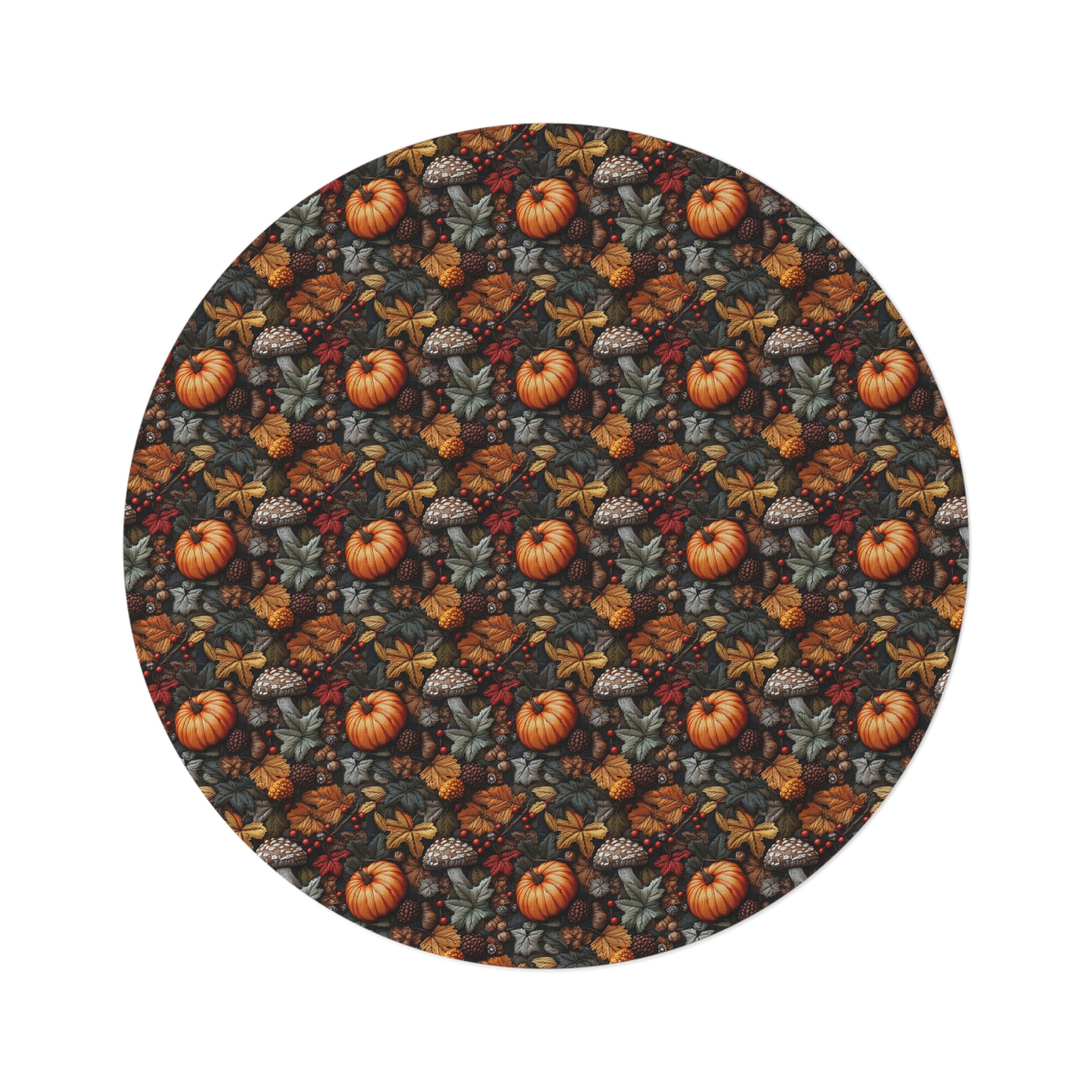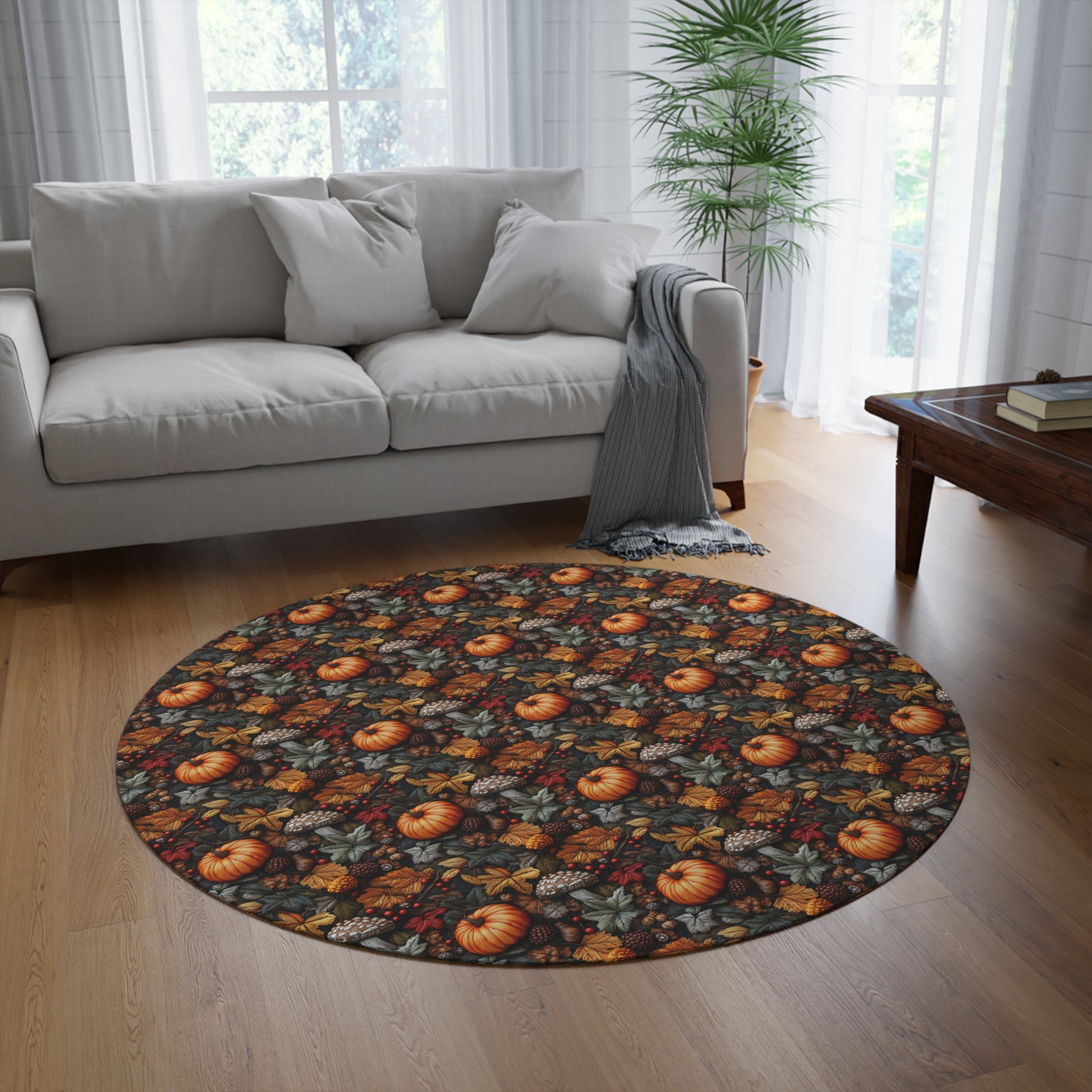 Fall Leaves Pumpkin Embroidery Round Rug, Autumn Harvest Decor, Thanksgiving Table Centerpiece, Holiday Season Floor Mat, Cozy Home Accent,