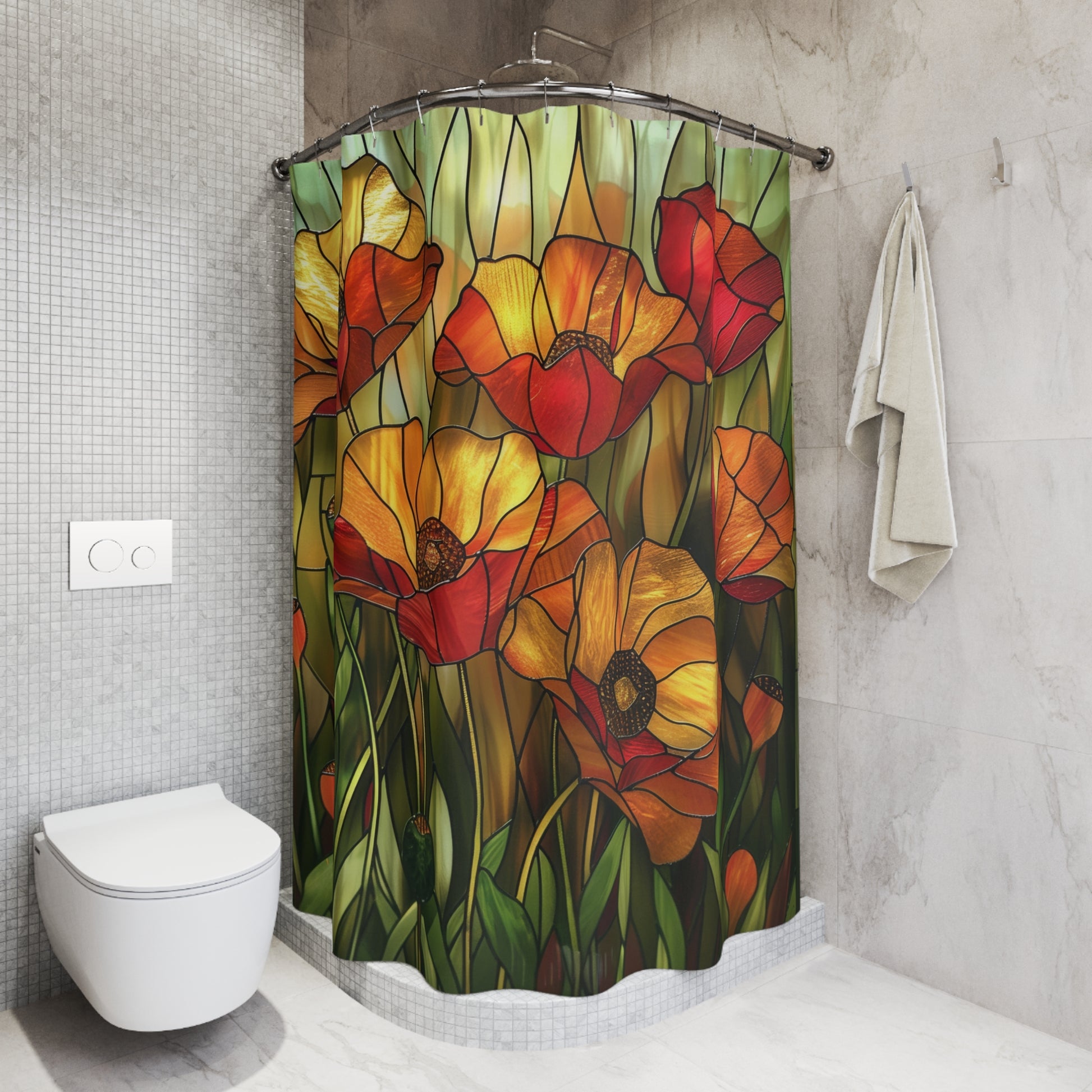 Faux Stained Glass Of Poppies Polyester Shower Curtain