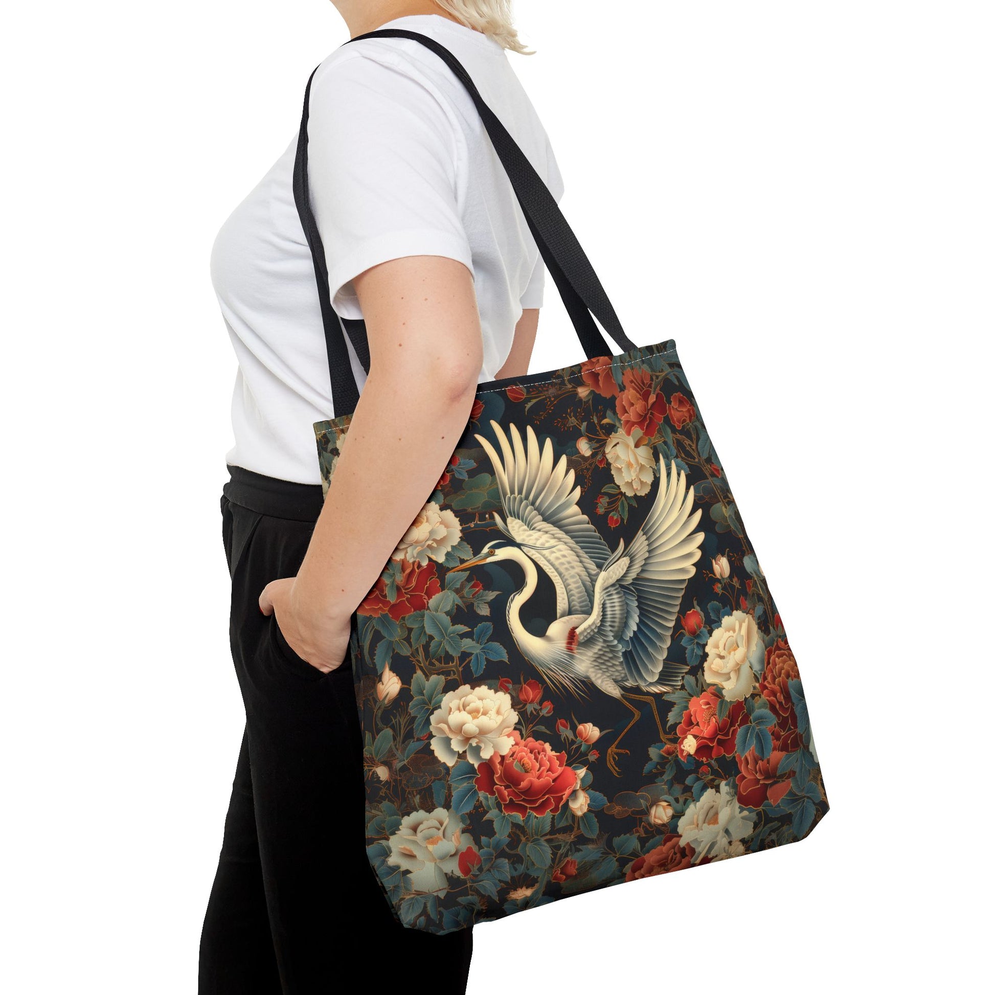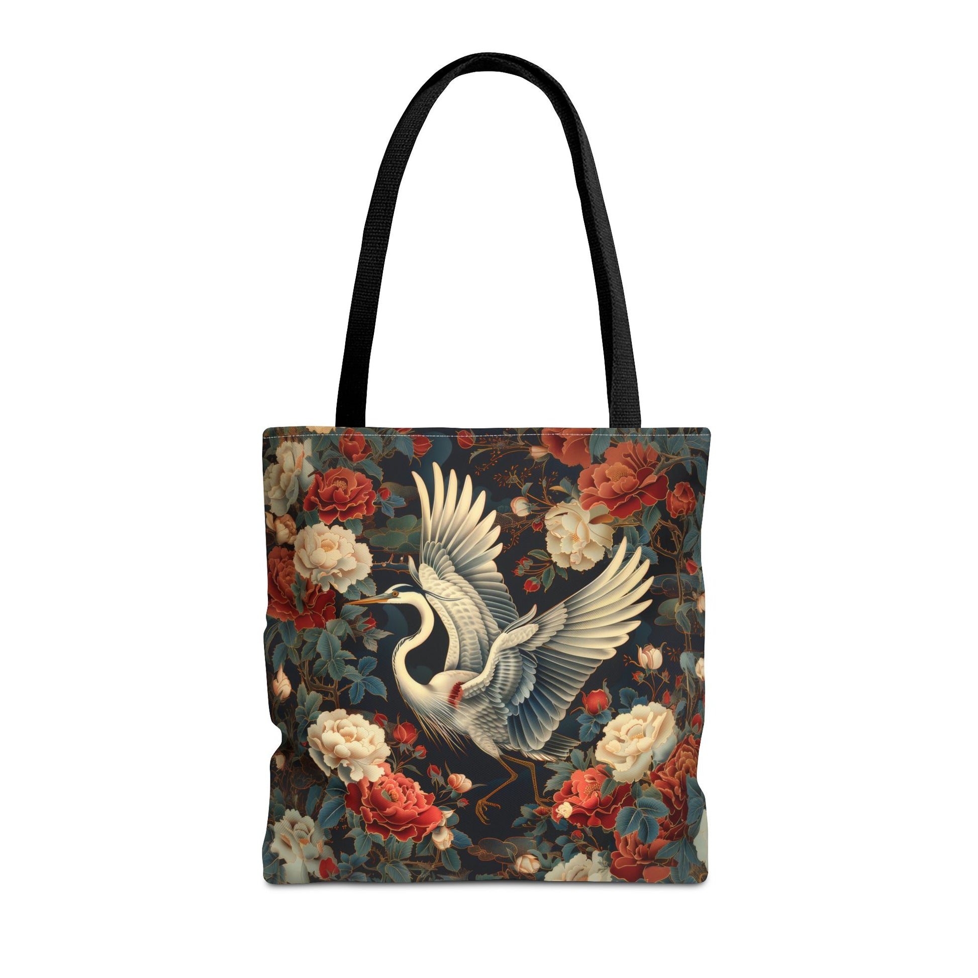 Flying Heron Vietnamese Art Style Tote Bag, Eco-Friendly Carryall